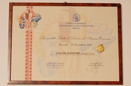 Casa del Radiatore, Premio alla Fedeltà al Lavoro e del Progresso Economico, grazie alla continua ricerca verso il miglioramento tecnologico e qualitativo le ha permesso di affrontare con successo le richieste crescenti di affidabilità e performance che provengo dal mercato.